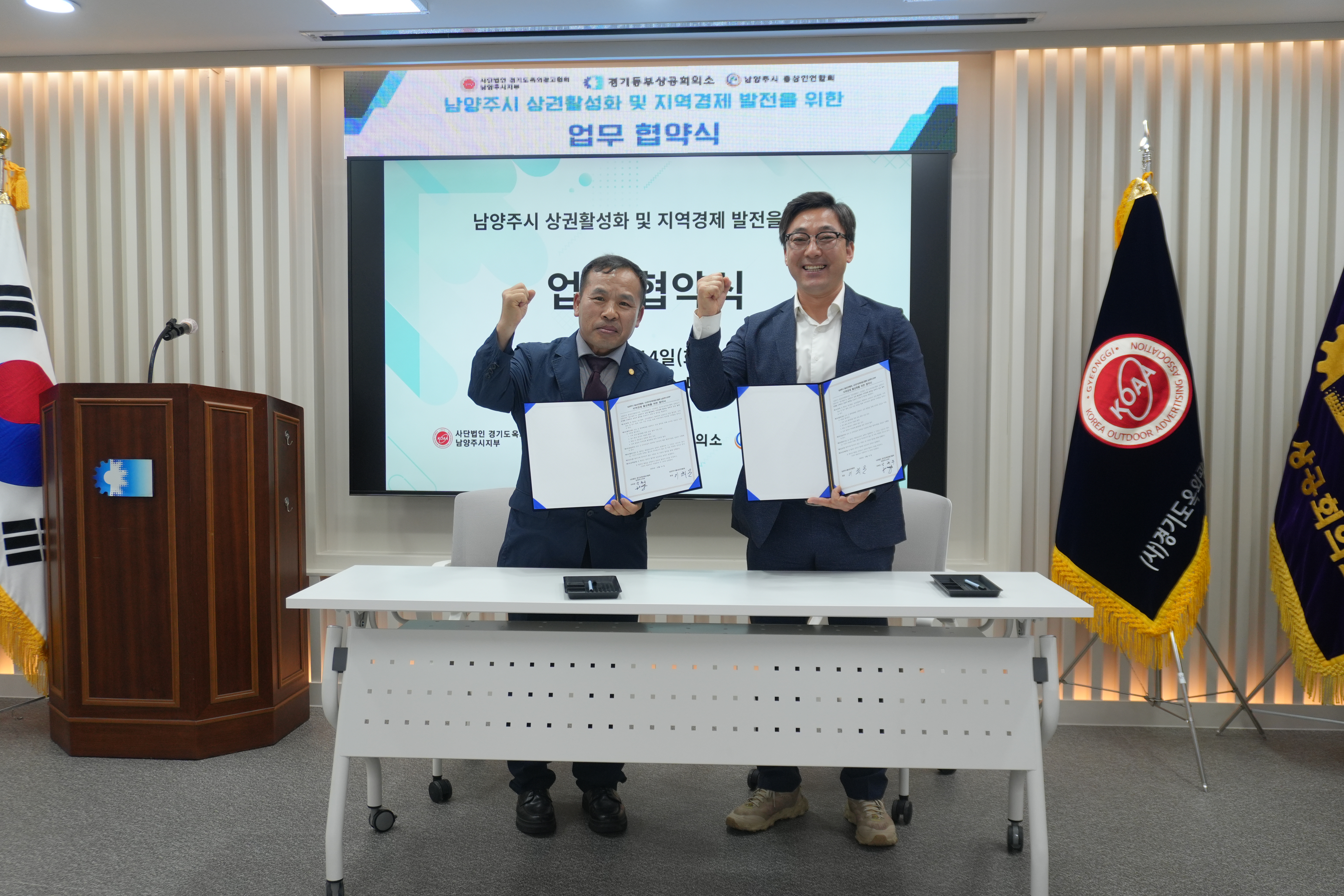 경기동부상공회의소, 옥외광고협회 남양주시지부·남양주시총상인회와 업무협약 체결지역경제 활성화와 상권 발전을 위한 상생 협력의 새 출발경기동부상공회의소(회장 이홍균)는 2025년 10월 14일(월), 본 회의실에서 사단법인 경기도옥외광고협회 남양주시지부(지부장 강희주), 남양주시총상인회(회장 이희문)와 함께 "지역경제 활성화 및 상권 발전을 위한 업무협약(MOU)"을 체결했다.