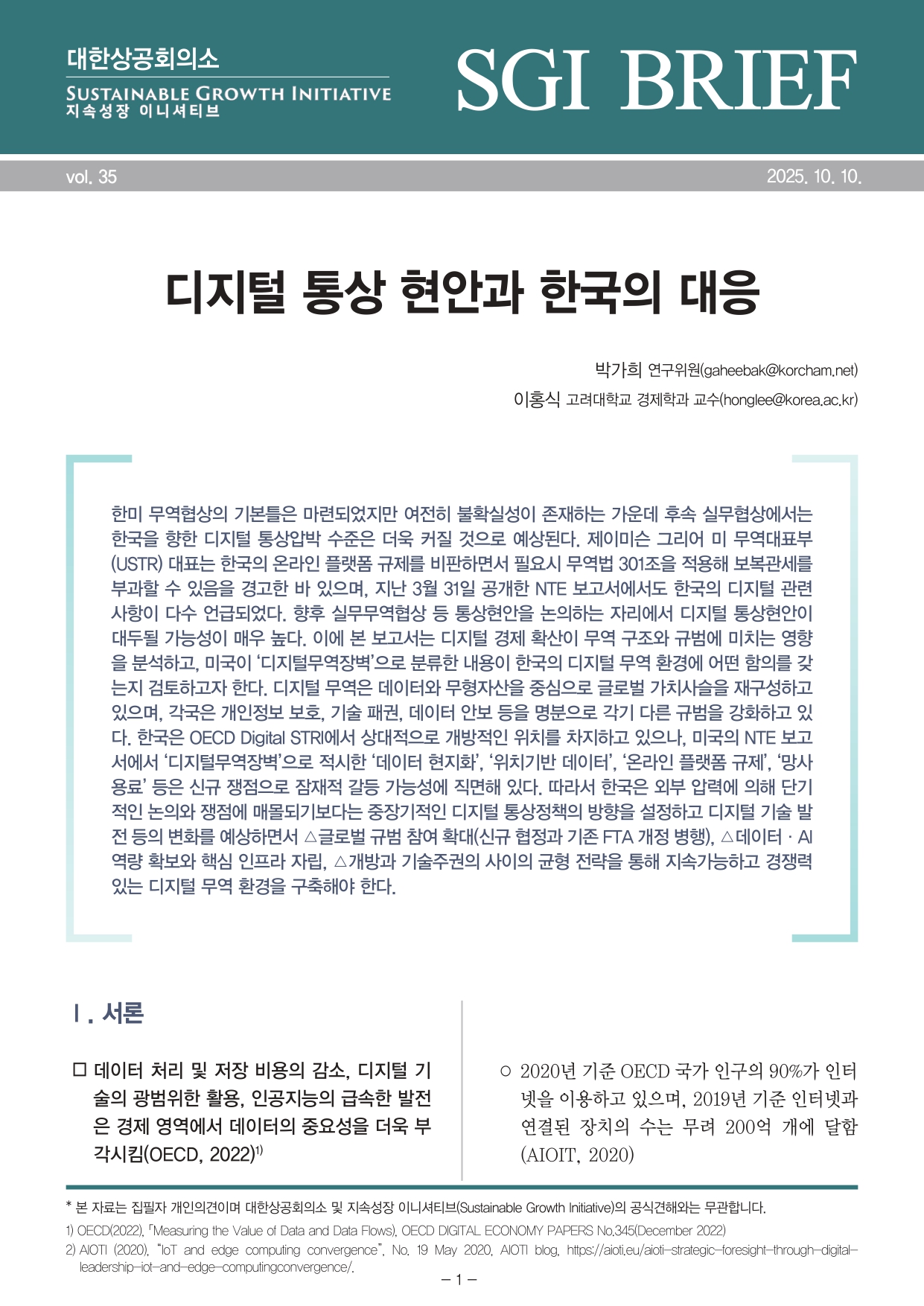 | ‒ | [SGI 브리프] 디지털 통상 현안과 한국의 대응 |