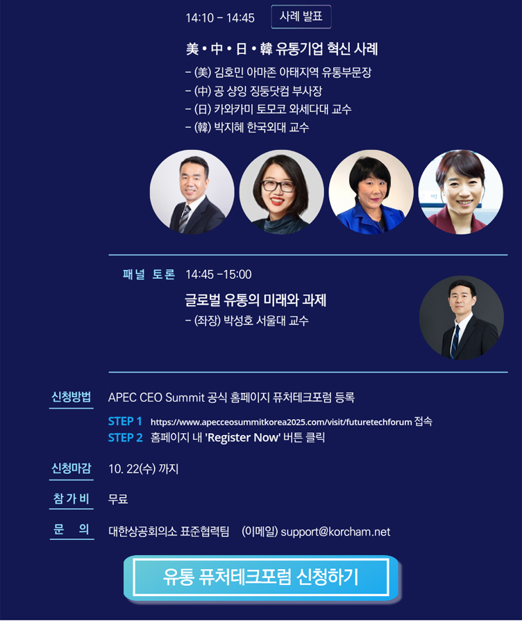 APEC CEO Summit 홈페이지 주소 : https://www.apecceosummitkorea2025.com/visit/futuretechforum |