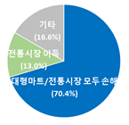 또한 대형마트를 전통시장의 경쟁상대로 지목한 비율은 14.8%에 그쳐 슈퍼마켓․식자재마트(28.7%), 온라인(27.8%), 인근전통시장(25.0%)에도 못 미치는 것으로 조사됐다. <기타(3.7%)>